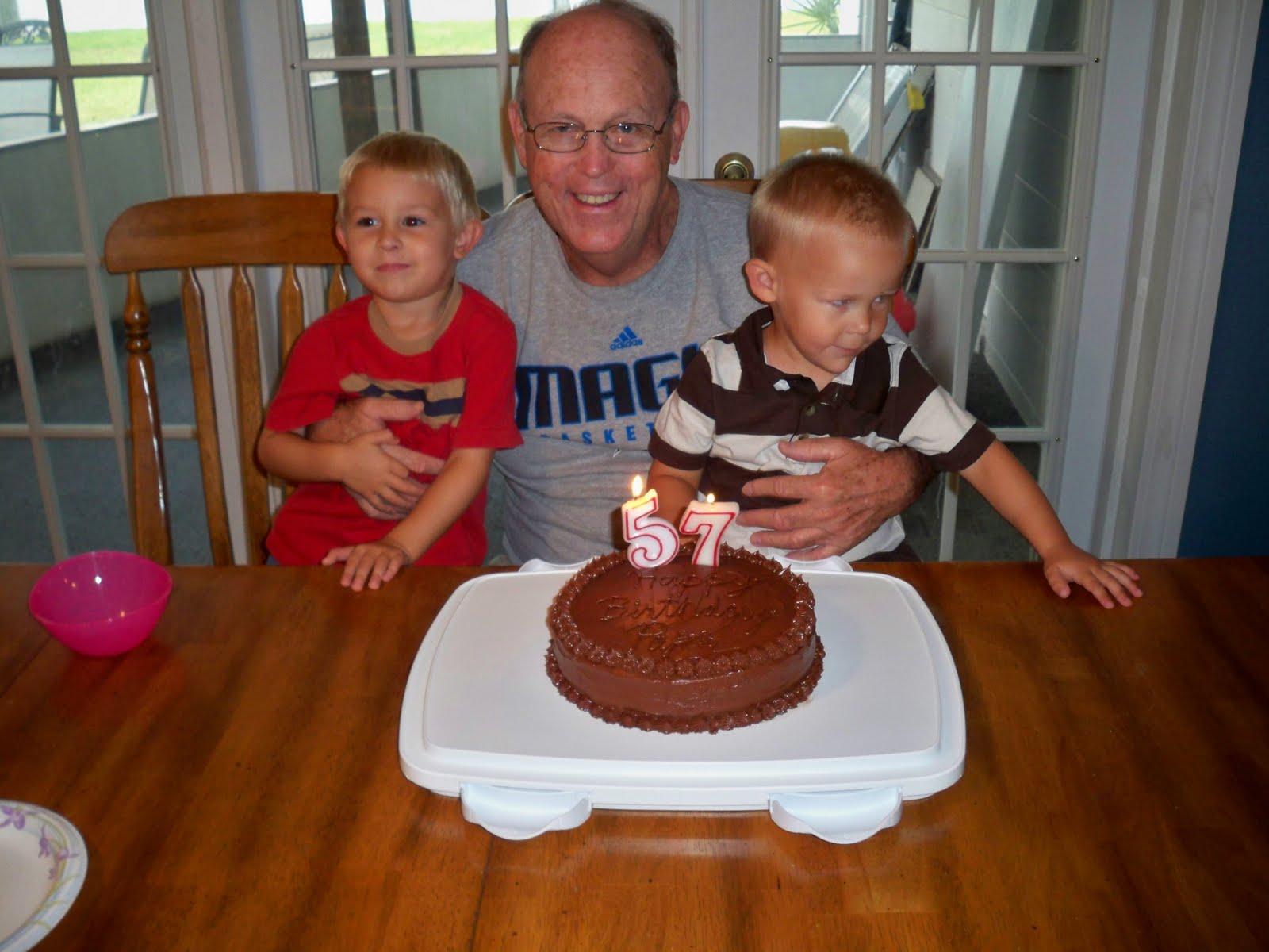 My dad wanted a chocolate chocolate cake so I made one and we celebrated his birthday with Aly and family. Matthew and Austin wanted to be close to the cake and help blow out the candles. Here are some pictures of our little birthday party.